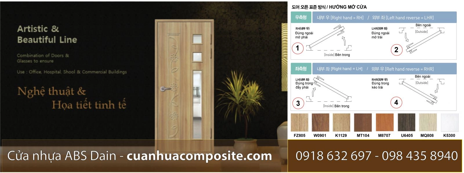 CỬA NHỰA ABS HÀN QUỐC 204 màu sắc vân giả gỗ gây ấn tượng và sang trọng cho người dùng.