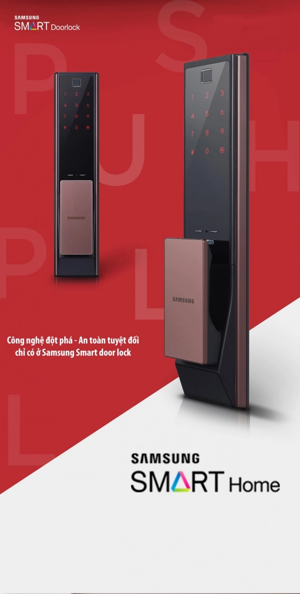 Khóa cửa vân tay Samsung SHP-DP738 là mẫu sản phẩm khóa Samsung mới tung ra trong năm 2018 của hãng khóa điện tử Samsung. Sản phẩm Samsung SHP-DP738 được thiết kế dựa trên nền tảng khóa samsung SHP-DP728 nhưng hoàn thiện hơn về kiểu dáng thiết kế, cải tiến công nghệ mở khóa qua blutooth và đầu đọc vân tay mới nhạy hơn.