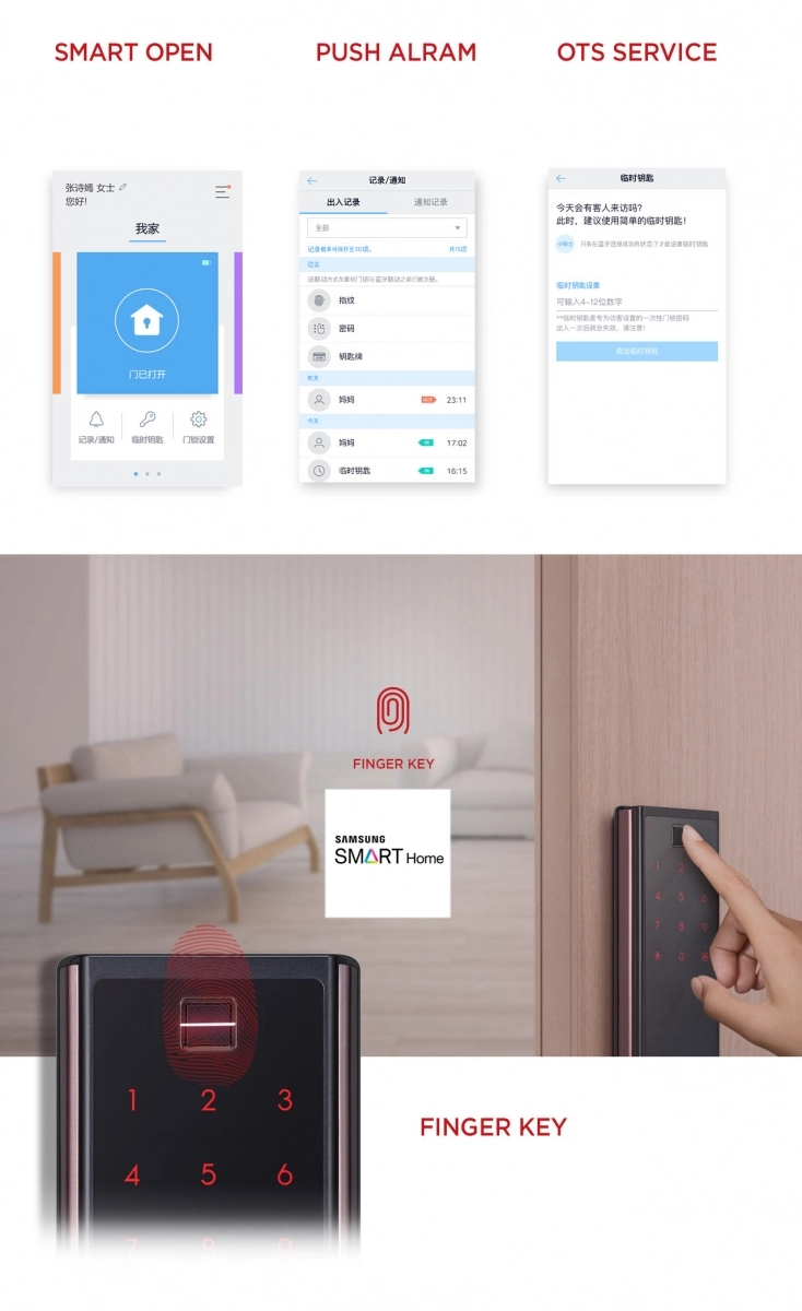 + Kết nối với chuông cửa có hình samsung để mở khóa thông qua màn hình chuông cửa